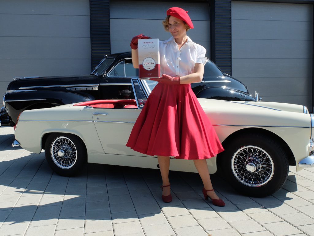Im Bild unten das Outfit von Eisvogel für die unter Liebhabern klassischer Automobile bekannte Marke „Wagner Spezialschmierstoffe“. Eisvogel ist stolzer Ausstatter der „Wagner-Oil-Girls“.